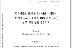 안수강, "한국기독교 옛 문헌에 나타난 여성들의 ‘한’(恨), 그리고 현재적 함의: 저작, 일기, 설교, 저널 등을 중심으로"[KCI]