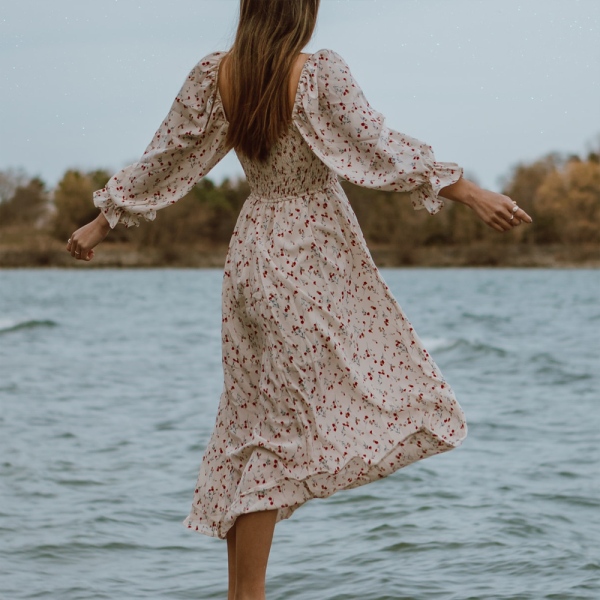 스카이블루 칼라넥 코튼 롱 원피스