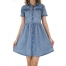 스카이블루 칼라넥 코튼 롱 원피스